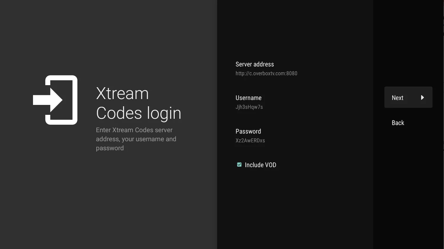 Enter Xtream Codes details